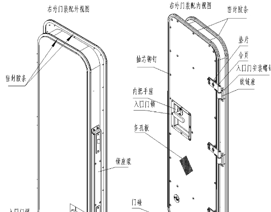 入口門分左、右入口門,左、右入口門以鏡像對稱方式安裝在HXD2C機車司機室左、右側墻上,完整的入口門包括鎖緊系統、門扇框架、密封系統、活頁及鉸鏈座等。入口門能承受風、沙、雨、雪、煤塵和偶有沙塵暴,并能保持良好的水密性、隔熱降噪性能。 →